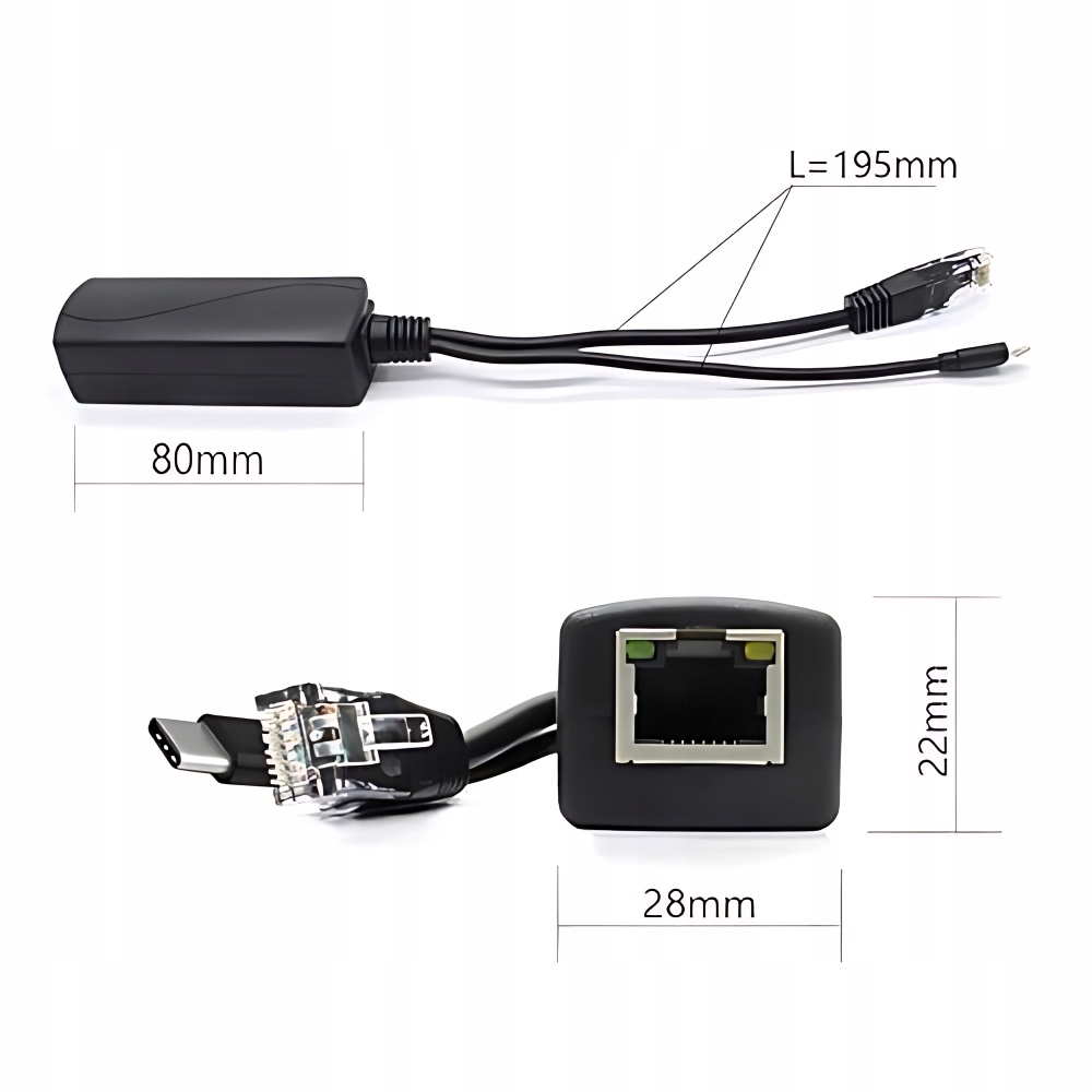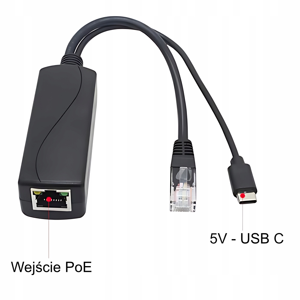Jednoportowy rozdzielacz PoE umożliwia zasilanie urządzeń Przez USB-C napięciem 5V DC (2,4A) z wykorzystaniem istniejącej instalacji sieciowej. Idealny do zasilania urządzeń smart-home, modułów IoT oraz innych urządzeń, które nie obsługują natywnie Power-over-Ethernet.
