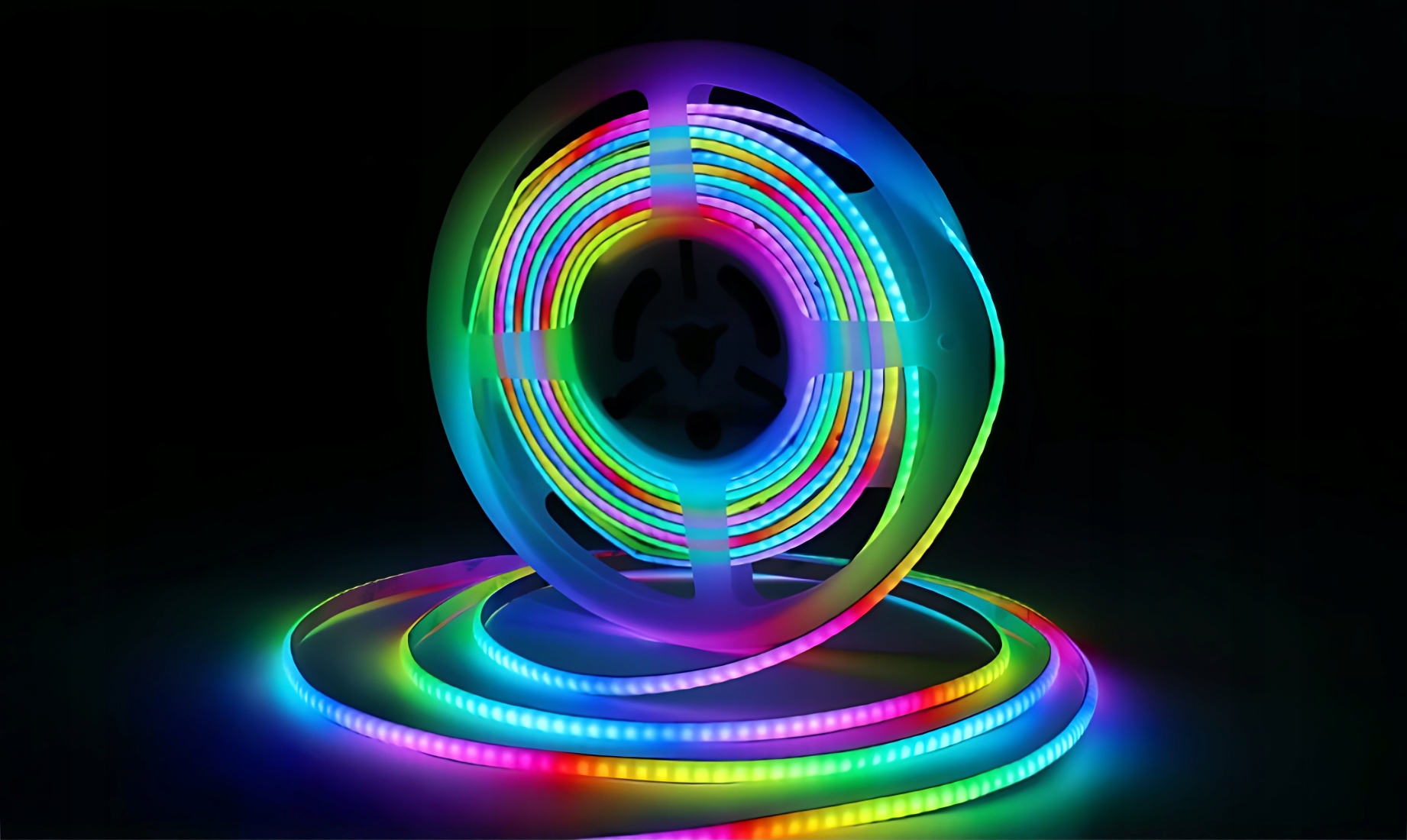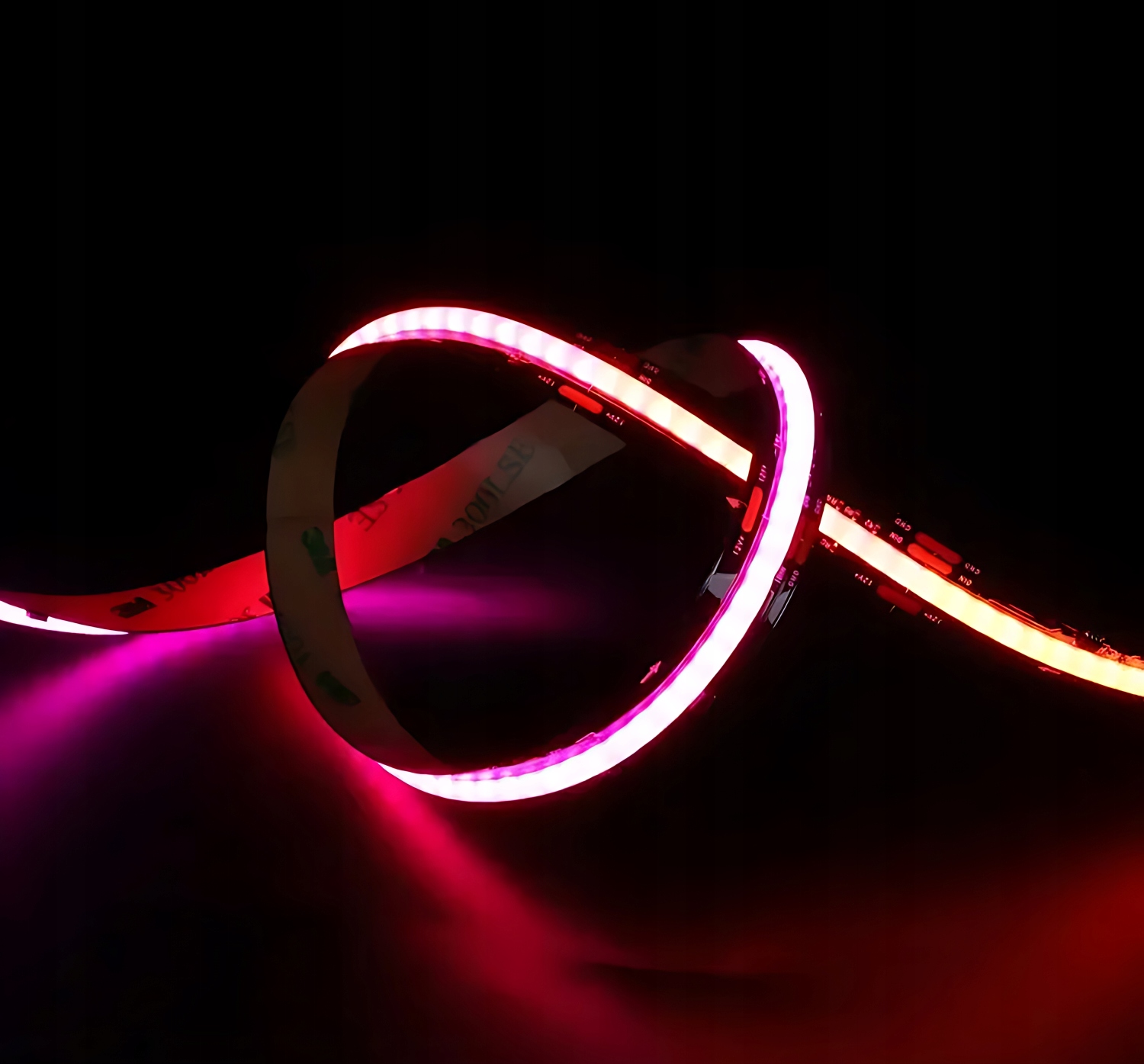 Magic LED Strip to cyfrowa taśma LED o rekordowej gęstości 432 diod na metr. Każda dioda jest sterowana indywidualnie chipem WS2811, co pozwala na tworzenie płynnych animacji, efektów tęczy i dynamicznych przejść kolorów.