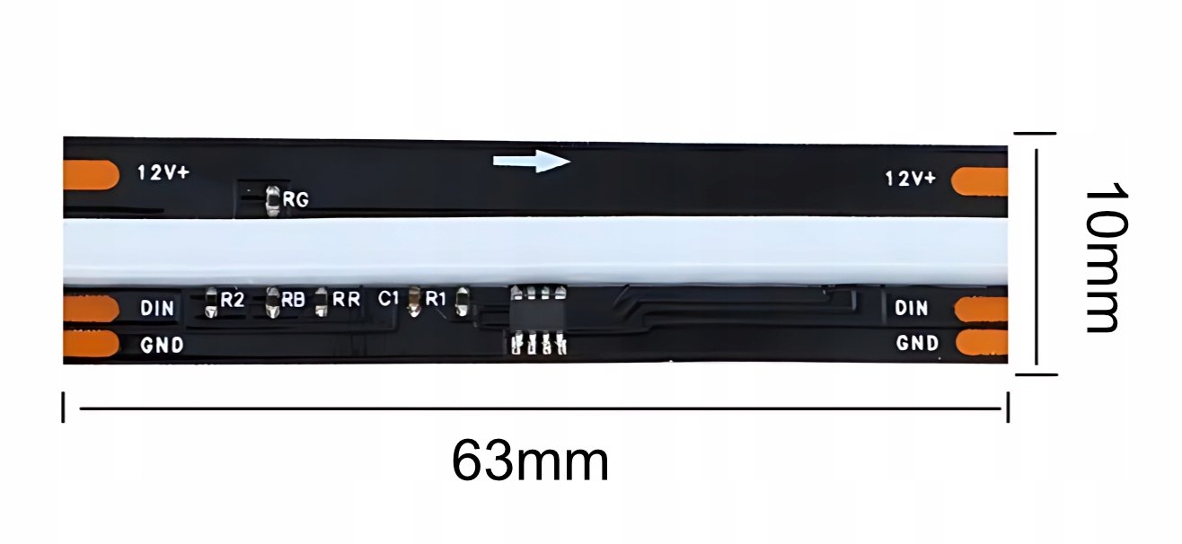 ✅ Rozwiązanie: Podłącz DATA do początku taśmy - tam gdzie strzałka się zaczyna!