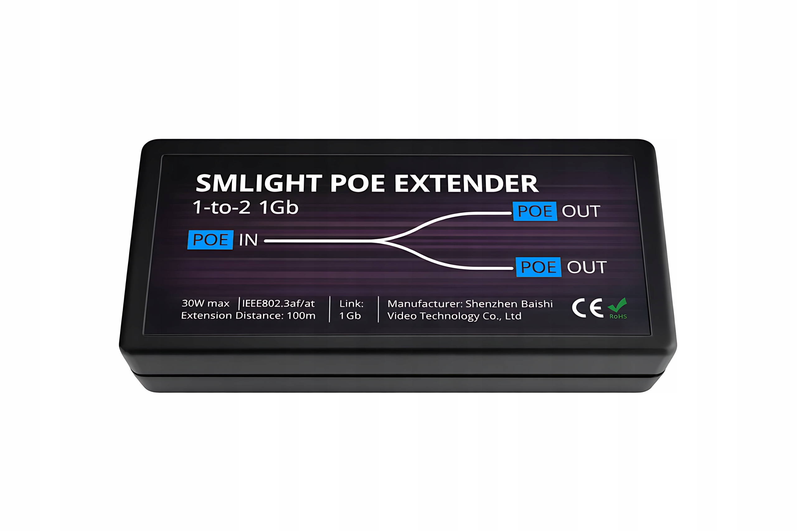Zaawansowany extender PoE (Power over Ethernet) najnowszej generacji, zaprojektowany specjalnie do profesjonalnych instalacji wymagających rozszerzenia zasięgu zasilania i transmisji danych. Urządzenie umożliwia wydłużenie sieci Ethernet o dodatkowe 100 metrów przy jednoczesnym zachowaniu pełnej funkcjonalności zasilania PoE.