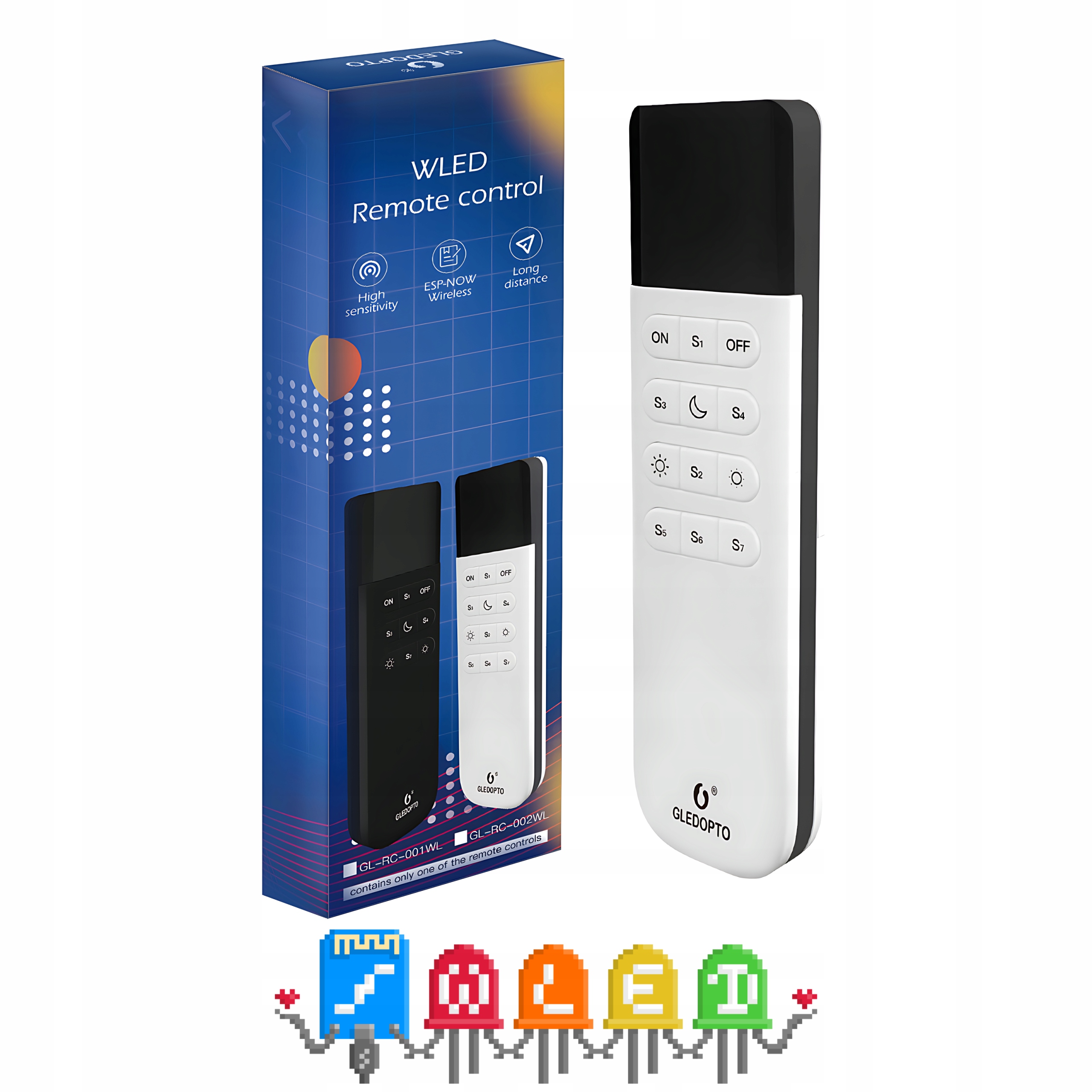 Gledopto GL-RC-002WL to nowoczesny, bezprzewodowy pilot zdalnego sterowania, zaprojektowany specjalnie do kontrolowania sterowników LED działających na popularnym, darmowym oprogramowaniu WLED. Jeśli korzystasz z taśm LED typu WS2812, WS2811, SK6812 czy podobnych i sterujesz nimi przez oprogramowanie WLED, ten pilot to idealne rozwiązanie dla Ciebie.